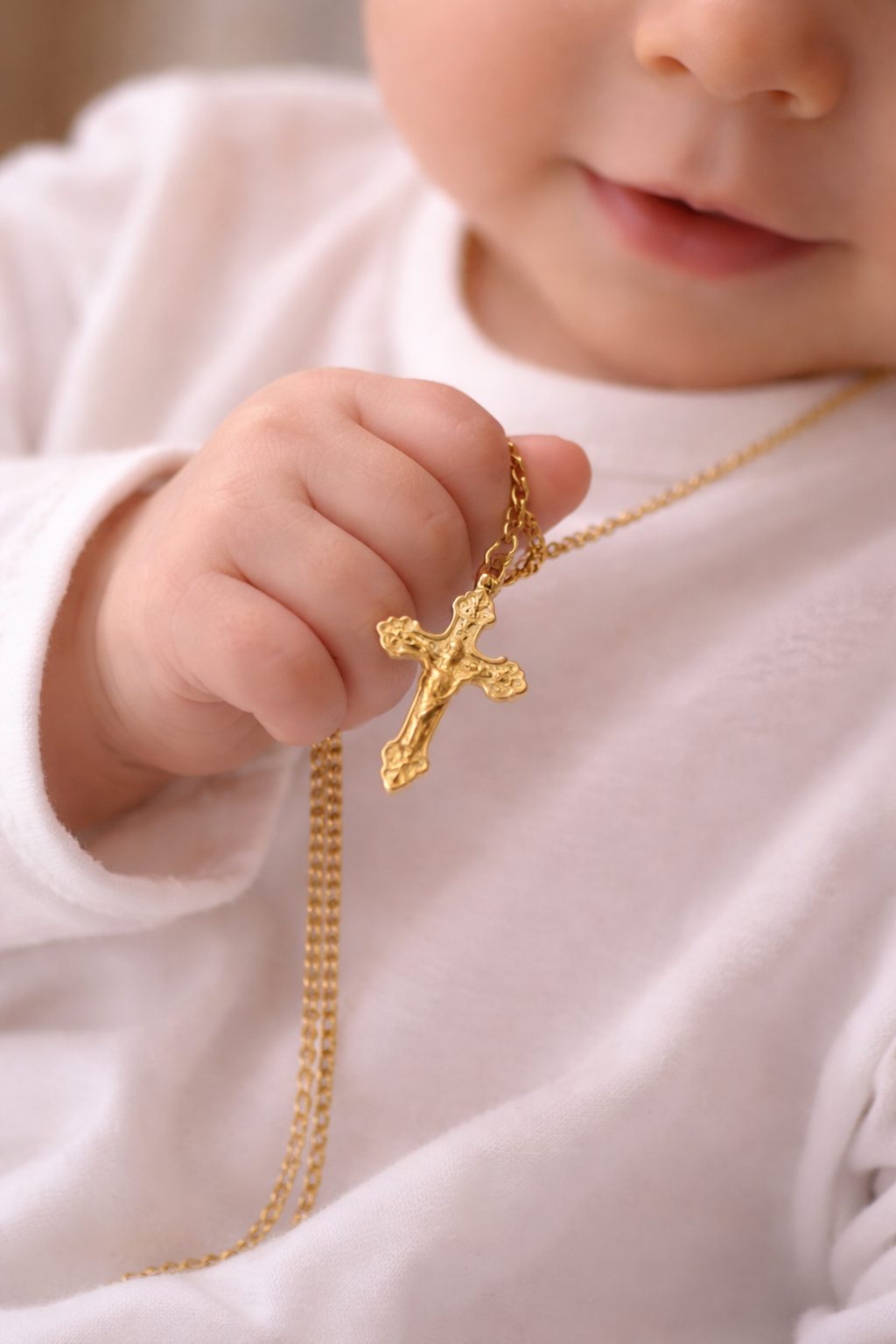 L’oro giallo è il classico del Battesimo, l’oro bianco è più moderno e discreto: scegli in base allo stile della famiglia. - 11) Croce con crocifisso o croce semplice: quale scegliere?
