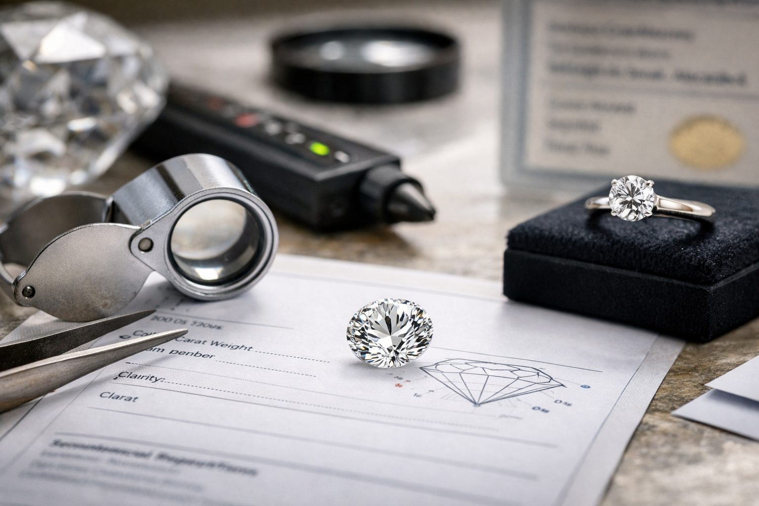 Il modo più serio per riconoscere un diamante è la presenza di un report gemmologico di un laboratorio riconosciuto. Tra i più noti: GIA, IGI, HRD Antwerp, AGS.